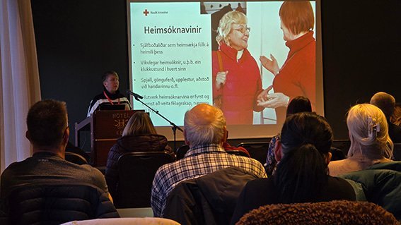 Nú stendur yfir sameiginlegur fundur allra deilda þar sem Sóley Björk Stefánsdóttir, verkefnastjóri í Eyjafjarðardeild Rauða krossins á Íslandi, er að segja aðeins frá Rauða krossinum og helstu verkefnum Eyjafjarðardeildarinnar.