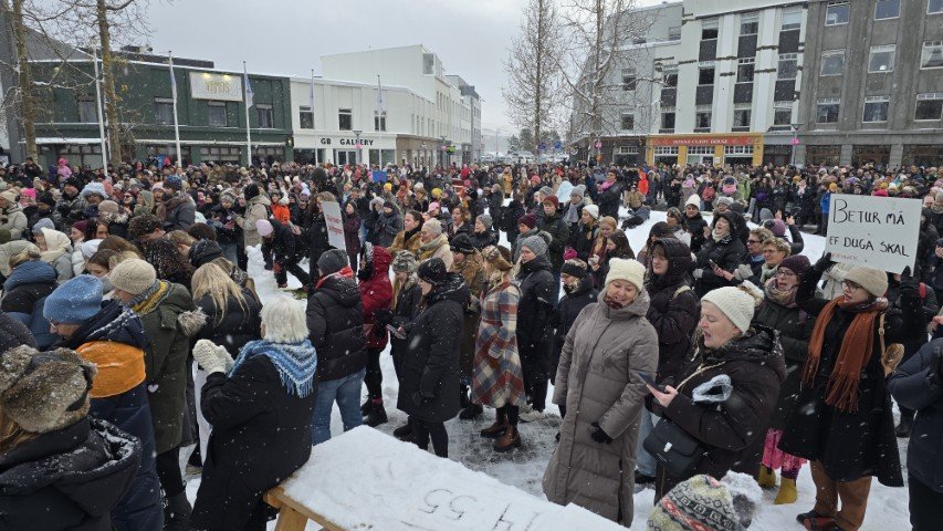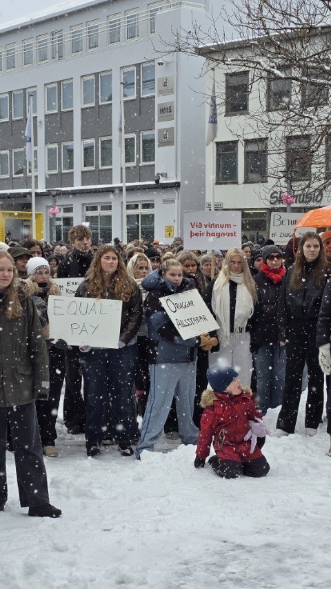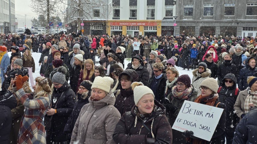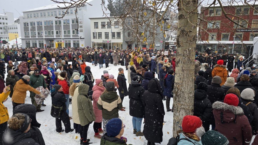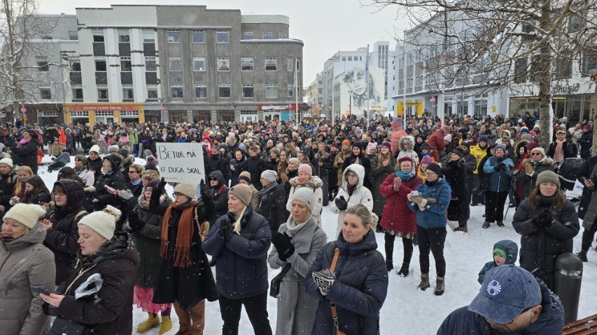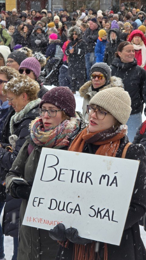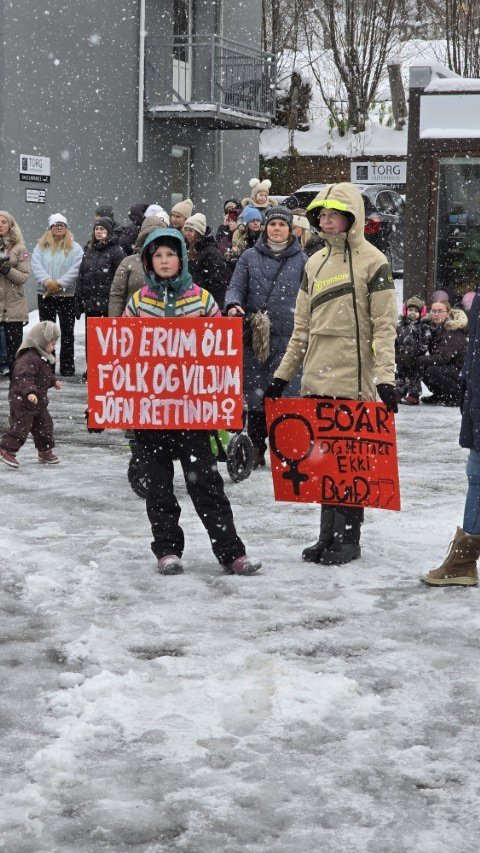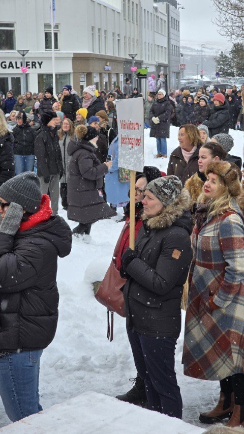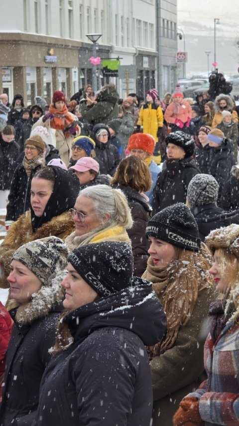 Á bilinu 1.500 til 2.000 konur, kvár og karlar mættu á baráttu- og samstöðufund sem haldinn var á Ráðhústorginu á Akureyri á Kvennafrídeginum sl. föstudag. Samtök launafólks ásamt fjölmörgum öðrum baráttusamtökum kvenna og hinsegin fólks stóðu að deginum líkt og undanfarin ár en nú eru 50 ár liðin frá því að konur lögðu fyrst niður störf til þess að krefjast jafnréttis. Konur og kvár sem það geta voru hvött til að taka þátt í skipulagðri dagskrá ásamt því að lákmarka þá vinnu og ábyrgð sem felst í annarri og þriðju vaktinni.