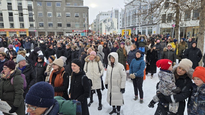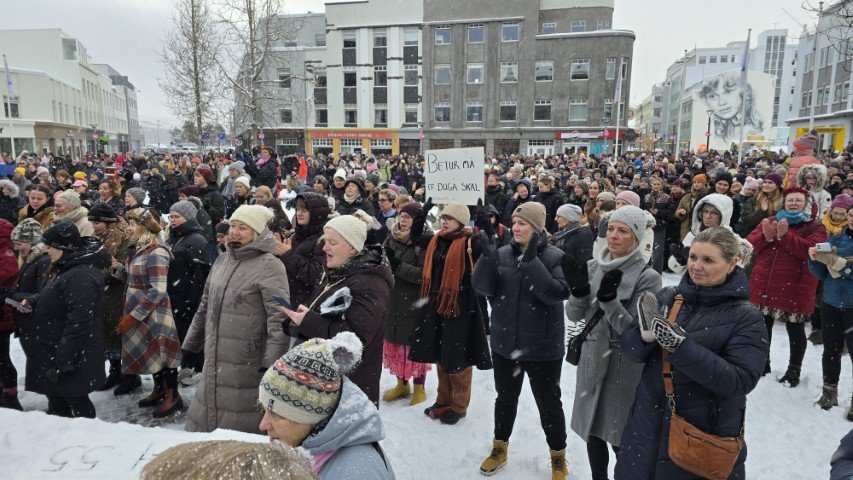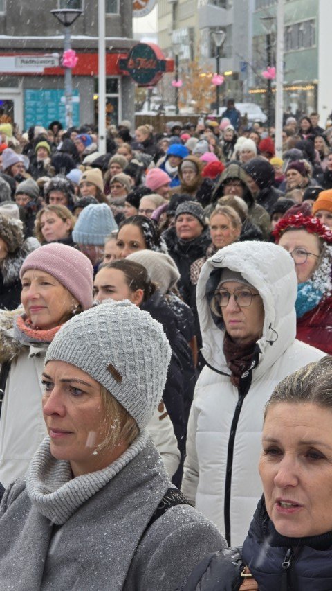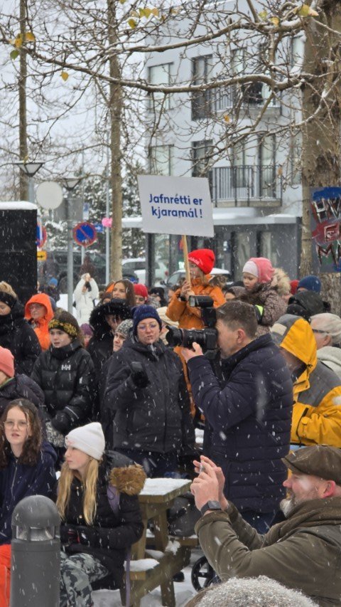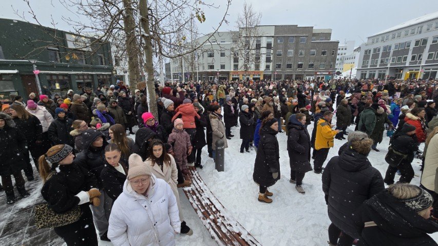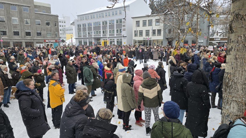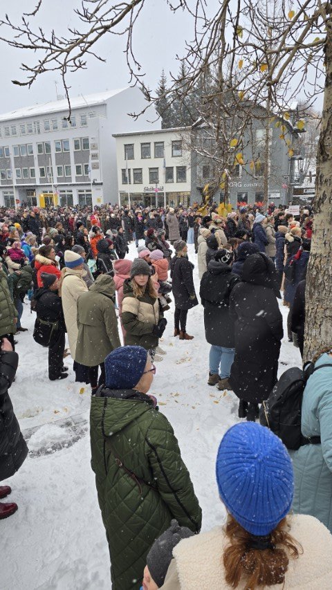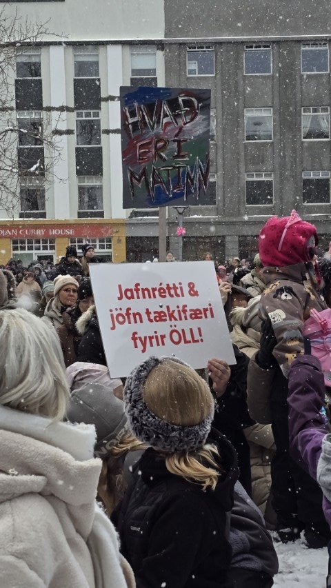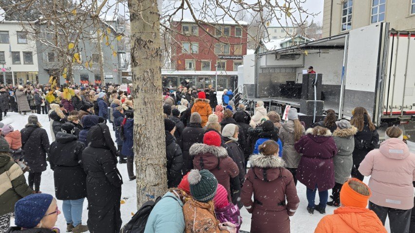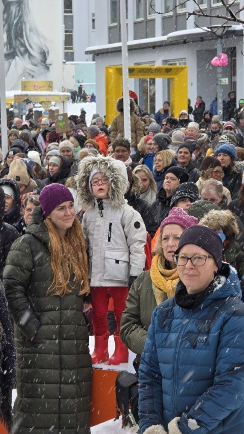 Á bilinu 1.500 til 2.000 konur, kvár og karlar mættu á baráttu- og samstöðufund sem haldinn var á Ráðhústorginu á Akureyri á Kvennafrídeginum sl. föstudag. Samtök launafólks ásamt fjölmörgum öðrum baráttusamtökum kvenna og hinsegin fólks stóðu að deginum líkt og undanfarin ár en nú eru 50 ár liðin frá því að konur lögðu fyrst niður störf til þess að krefjast jafnréttis. Konur og kvár sem það geta voru hvött til að taka þátt í skipulagðri dagskrá ásamt því að lákmarka þá vinnu og ábyrgð sem felst í annarri og þriðju vaktinni.