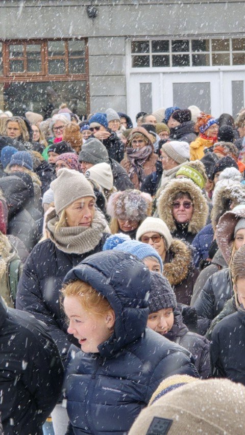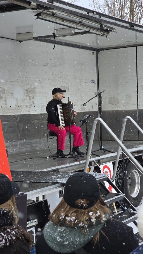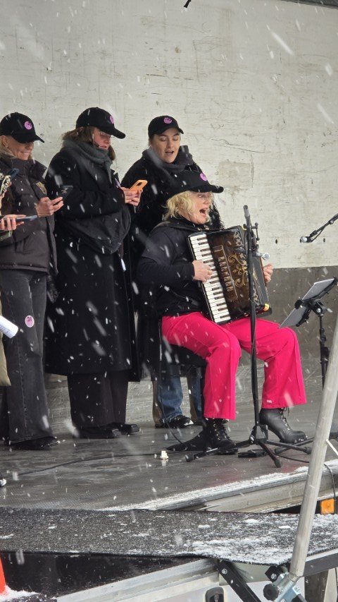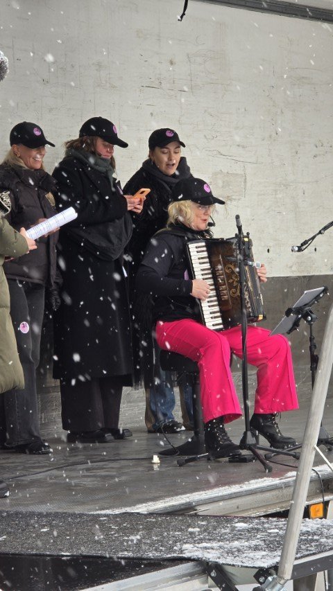 Í lok dagskrár lék Hrund Hlöðversdóttir á harmonikku og söng og voru raddböndin vel þanin af gestum fundarins þegar allir sungu með lokalaginu Áfram stelpur sem samið var í tilefni Kvennafrídagsins 1975.