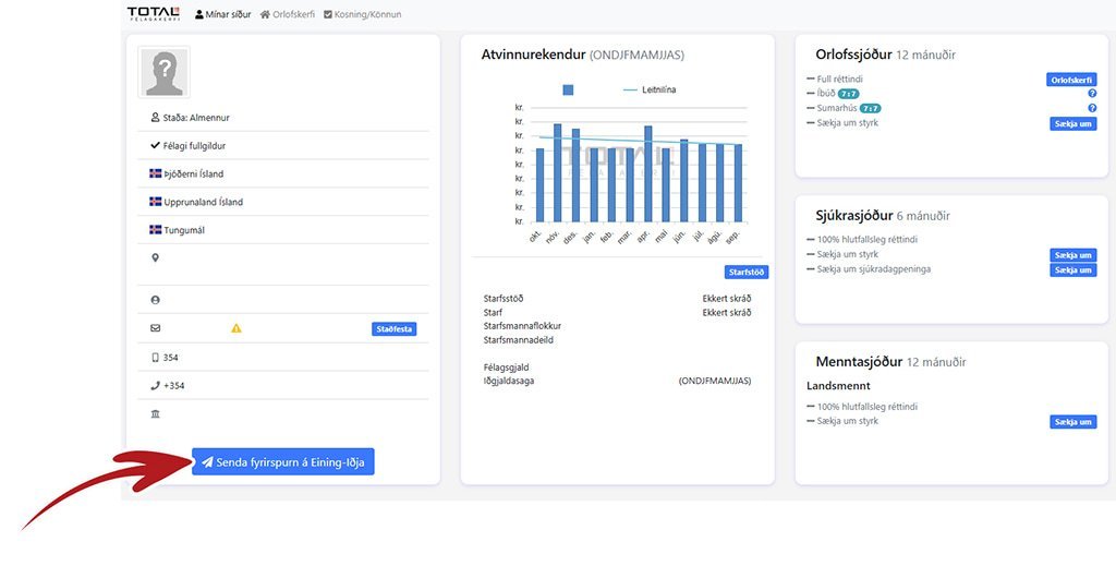 Á Mínum síðum félagsins má finna hnapp til að senda inn fyrirspurn eða stofna mál.