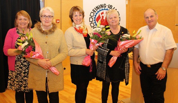 „Hafið mikla þökk fyrir ykkar störf,“ sagði Björn Snæbjörnsson, formaður Einingar-Iðju, eftir að hann nældi gullmerk félagsins í þær. Hér fyrir neðan má lesa hvað Björn hafði um þær að segja áður en hann sæmdi þær gullmerki félagsins.